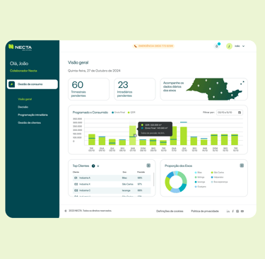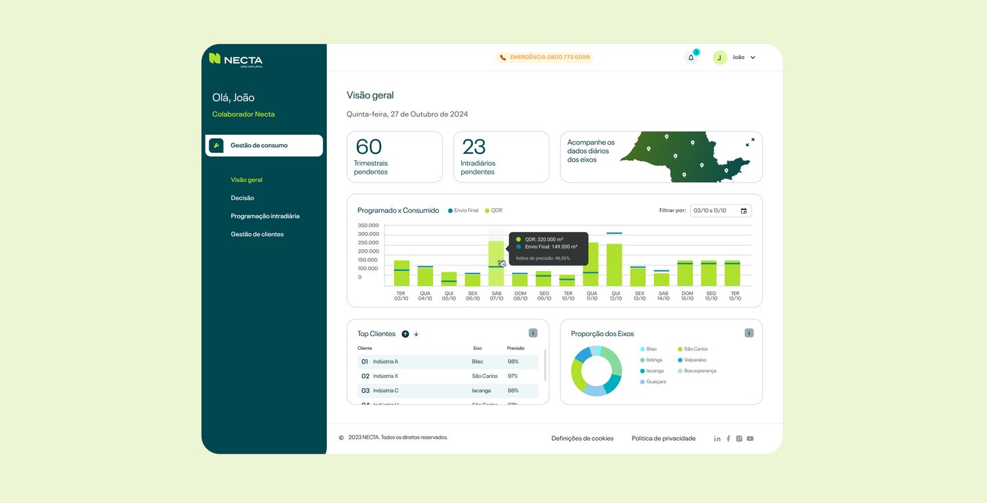 o portal de previsibilidade da Necta se tornou uma ferramenta estratégica para gestão, apoiando tanto a equipe interna quanto os clientes industriais — responsáveis por cerca de 90% do faturamento da empresa.